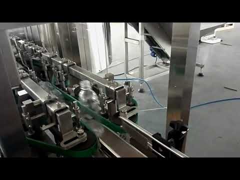 This bottle unscrambler sorts round plastic bottles automatically and places on a conveyor at speed s of up to 100 pcs/min. Stable operation at low noise. - Specifications: bottle diameter: 45-90mm; bottle height: 75-240mm; sorting speed: max. 100 bottles/min; machine stops automatically when the bottles are jammed due to photocell; MITSUBISHI PLC, WEVIEW touchscreen, OPTEX photocell, SCHNEIDER frequency converter; Frame of stainless steel (SS304); compressed air: 6-8bar; power: 220V, 2kW; machine dimensions: L2600xW1500xH1500mm. Optional: different unscramble trays for different bottle sizes.