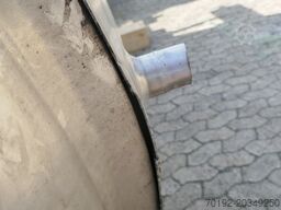 Remarks: Double jacket probably with sprinkling ring – suitable only for non-pressurized temperature control; welding of the double jacket in the upper area has partially come loose; outlet diameter 65 mm (tapering to approx. 50 mm towards the tank); small dents inside the tank; heating connections cut off