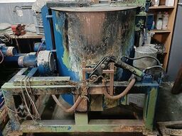 Two cylindrical centrifuges with hinged lids from an unknown manufacturer, each equipped with two electric motors, are available. The centrifuges have fire damage, and the wiring and the hydraulic system must be renewed. An on-site inspection is possible.